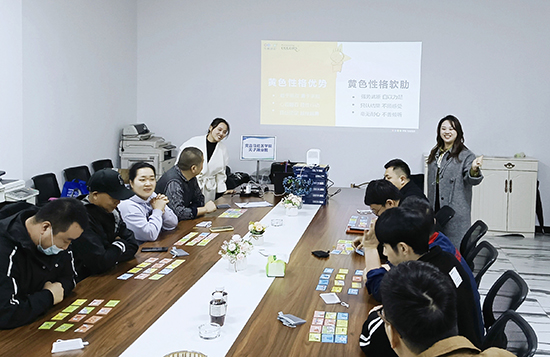 緊接著,特邀嘉賓秦貴瓊老師為大家?guī)砹诵愿裆士ㄅ茰y試環(huán)節(jié)。這一環(huán)節(jié)旨在通過性格色彩學(xué),幫助大家更好地了解自己的性格特質(zhì),從而在團隊協(xié)作中發(fā)揮出更大的優(yōu)勢。秦老師耐心地引導(dǎo)大家進行卡牌選擇,并逐一解讀卡牌背后的深層含義。員工們在輕松愉快的氛圍中,不僅加深了對自我的認知,還學(xué)會了如何在日常工作中與不同性格的同事有效溝通,共同推動團隊的和諧發(fā)展。