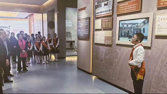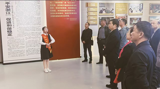 趙昊一行在諸暨市關工委主任周雪芬、諸暨市關工委專職副主任應仲九等的陪同下來到大廳。講解員們分塊站好講解位置,面對一位位陌生的客人,從容不迫、神態自若地講解有關“楓橋經驗”幾個區塊的內容。從入口的巨型壁畫,到“楓橋經驗”的誕生,再到“楓橋經驗”的演進和“楓橋經驗”的發展,一直到2023年9月20日下午習近平總書記親臨“楓橋經驗陳列館”作出“要堅持好、發展好新時代‘楓橋經驗’,堅持黨的群眾路線,正確處理人民內部矛盾,緊緊依靠人民群眾,把問題解決在基層、化解在萌芽狀態”的重要指示為止。小小講解員們富有表情、帶著童腔講述著一個個發生在身邊、家鄉踐行“楓橋經驗”的事例與故事,流利熟練地講解讓參觀者們聽得有滋有味,對“楓橋經驗”產生與發展歷程有了較為具體的了解,深刻領會“小事不出村,大事不出鎮,矛盾不上交,就地解決”的先進經驗。面對大家的提問,小小講解員們盡己所能彬彬有禮地作了一一解答,充分表達自己對“楓橋經驗”的熟悉和了解。