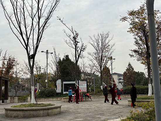 12月9日上午,陽光明媚,安吉縣社區教育學院昌碩分院桃園太極班的場地上傳來悠揚的音樂聲,一場別開生面的太極劍練習在此舉行。學員們在盧老師的指導下,紛紛揮舞起手中的長劍,劍影翩躚,場面蔚為壯觀。