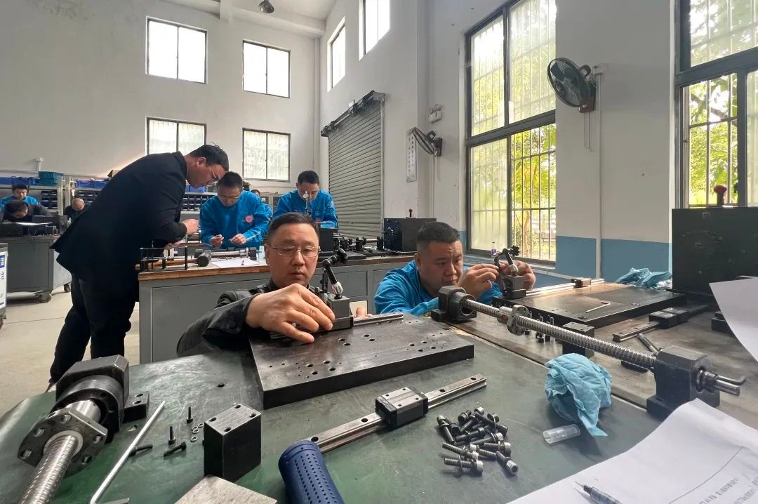 大賽通過理論筆試與實際操作相結合的方式全面考察選手理論知識和專業技能。理論考試時,選手們置身學校精心籌備的考場內,認真讀題、仔細作答,展現扎實的專業素養。實操考試環節,選手們來到學校裝備完善的工作臺前,手持工具依次進行劃線、鋸割、打磨、找平、拋光等精細操作。一時間,鋸割聲、銼刀聲、敲打聲相互交織,勾勒出一幅緊張激烈的比賽場景。其間,選手們不時用游標卡尺精準測量,對不平整之處反復打磨,只為呈現最佳效果。