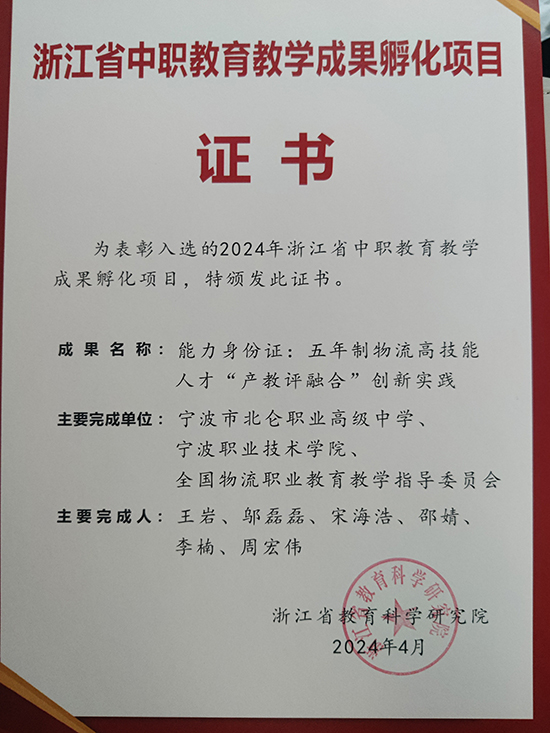 12月10日,教育部職業教育與成人教育司公示了2024年產教融合、校企合作典型案例的遴選結果,全國共133個優秀案例入選。作為浙江省10個案例之一,寧波市北侖職業高級中學申報的“能力身份證:基于港口工業社區的產教融合創新實踐”案例成功入選!