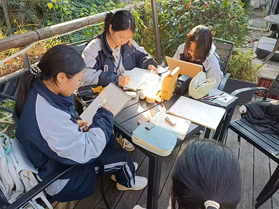 藝術(shù)因回歸自然而富有靈性,自然也因藝術(shù)的渲染而更添生機(jī)。庾村廣場周邊獨(dú)具一格的咖啡館、秀美的自然風(fēng)光為學(xué)生們提供了豐富的創(chuàng)作素材。在專業(yè)老師姚佳和卓成的耐心指導(dǎo)下,學(xué)生們迅速支起畫架,拿起畫筆,用眼睛捕捉美景,用心感受自然與人文的交融,將眼前的美景轉(zhuǎn)化為筆下生動(dòng)的線條。他們從不同角度,在點(diǎn)、線、面的節(jié)奏中,在七彩流光的韻律里,把每幅畫用極簡的線條勾勒出最具靈性的空間。