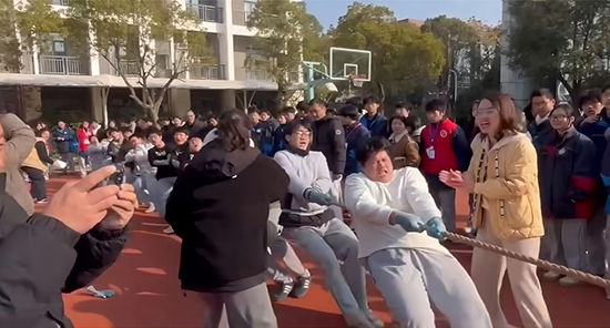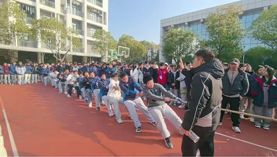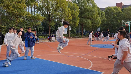 “加油……加油……”冬日暖陽下,諸暨技師學院的操場上響起此起彼伏的加油吶喊聲,“繩”采飛揚迎新年活動正在如火如荼地進行著。