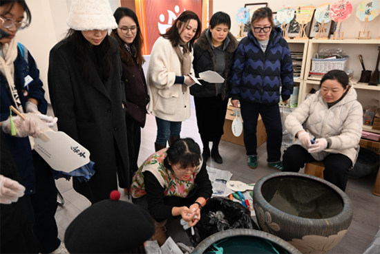 理事會一行人走進臨平商貿職高荷韻文化作品展示館,參觀了鐵藝畫工作室、黏土工作室,從體驗非遺漆扇、到一個個栩栩如生的黏土作品,理事會成員們贊不絕口,并對學校教師立足職教沃土,深耕專業領域表示肯定。