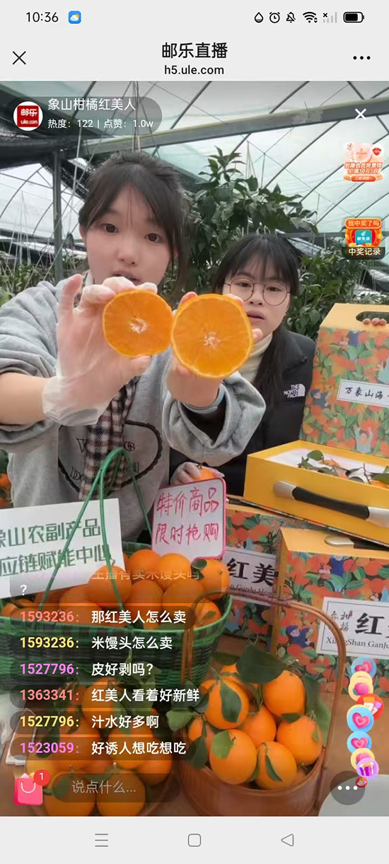 “各位美人粉,象山紅美人已經暢銷二十幾年了,今天直播間福利多多,除了優惠券可疊加多次使用外,最大的福利是主播手中的‘全球’限量款紅美人包裝禮盒,數量有限,先到先得!”冬至臨近,難掩寒意襲人,但是象山縣墻頭鎮西滬村先浩家庭農場里,卻是一片火熱。12月19日上午9時,中國郵政集團有限公司浙江省象山分公司聯合寧波建設工程學校開展了一場2024“源源鄉音”象山紅美人的溯源直播活動,吸引了眾多粉絲前來。