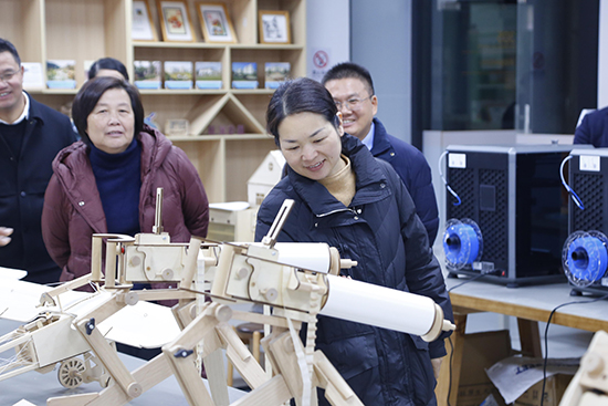 吳敏娟一行實地察看了學校木玩創新服務綜合體、云和抗戰紀念館等場所,深入了解學校的辦學規模、專業特色、產教融合、師資力量等情況,并提出指導意見。