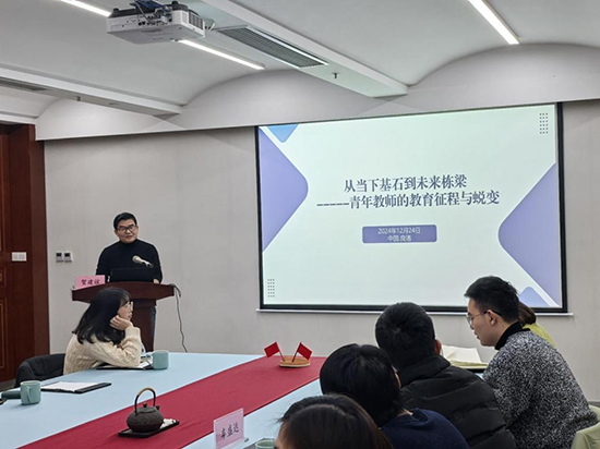 最后,賀建誼書記以《從當下基石到未來棟梁——青年教師的教育征程和蛻變》為主題開展分享。他著重指出,身為教師,務(wù)必立足當下,潛心積累知識、錘煉技能,持續(xù)提升專業(yè)素養(yǎng),筑牢教育根基;同時要放眼未來,積極思索教育發(fā)展走向,提前謀劃職業(yè)成長路徑;更要努力踐行知行合一,將理論與實踐緊密結(jié)合,實現(xiàn)自我成長的跨越。