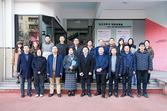 12月24日,溫州理工學院·溫州市第二職業中等專業學校推動中本一體化人才培養的交流座談會在溫二職專順利召開。溫州理工學院黨委副書記呂朝暉、教務處副處長徐偉敏、團委書記連政、文傳學院院長賀曉武、文傳學院副院長周子淵、文傳學院黨委副書記錢成敏、文傳學院新聞系主任劉素敏一行蒞臨學校,學校黨委書記雷學遠、校長潘樂慧、副校長胡金發、吳俊聲、鄭豪熱情接待。企業代表為愛專一集團董事長黃信樂、數字影像技術專業組教師、24數字影像技術中本班班主任、任課老師、家長代表和全體學生共同參與了此次會議。會議由教學副校長吳俊聲主持。