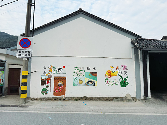 “立春”“雨水”“驚蟄”,這三個節氣不僅是中國傳統文化的瑰寶,也成為了俞塘村新文化建設的起點。在第一期墻繪活動中,學生們以這三個節氣為主題,將傳統文化與現代藝術完美融合,繪制出了一幅幅充滿生機與活力的墻畫。