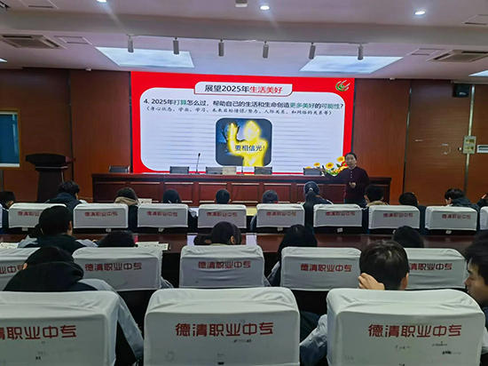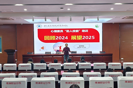 在即將告別2024年喜迎2025年之際,德清職業中專學生發展指導中心于12月25日班會課,在實驗樓階梯教室開展本學期最后一次心理委員培訓,本次主題為“回顧2024展望2025”,由心理老師崔明敏主持,全校各班級心理委員參加。