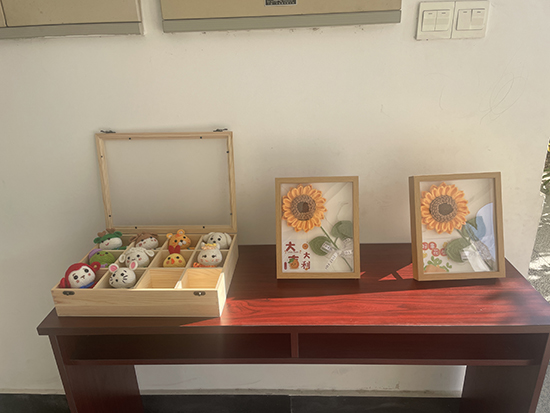 展覽現場,手工編織的向日葵作品格外引人注目。這些向日葵以鮮艷的黃色為主色調,花瓣層層疊疊,栩栩如生。學員們巧妙地運用編織技巧,將普通的線材變成了生動形象的向日葵。造型可愛的十二生肖動物玩偶則是此次展覽中的焦點。這些玩偶以中國傳統文化中的十二生肖為原型,通過學員們的精心編織,變得栩栩如生、形態各異。從機智靈活的老鼠到威武兇猛的老虎,從溫順可愛的兔子到憨態可掬的豬,每一個生肖玩偶都栩栩如生,仿佛下一秒就要躍入觀眾懷中。
