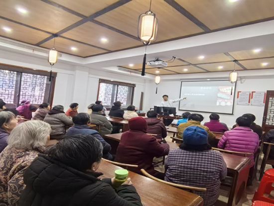 12月19日上午,安吉縣鄣吳鎮老年學校便民服務日活動如期而至,由安吉縣口腔醫院綜合科醫師黃俊標為老年學員作了一場“幸福晚年,從‘齒’開始”為主題的口腔健康知識講座。