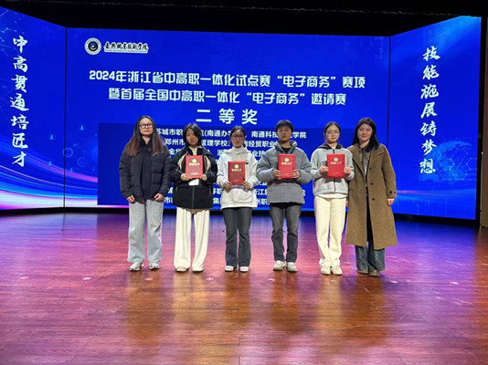 近日,在嘉興落幕的2024年浙江省中高職一體化試點賽“電子商務”賽項暨首屆全國中高職一體化“電子商務”邀請賽中,由玉環市中等職業技術學校22電商1班夏鈺和梁欣伊兩位同學與臺州職業技術學院組成的參賽隊伍,指導老師:林靜(中職)、林志(中職)、陳依童(高職)憑借出色的專業技能、創新的思維模式和扎實的團隊協作,在省內30支參賽隊伍中脫穎而出,榮獲二等獎。