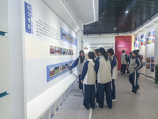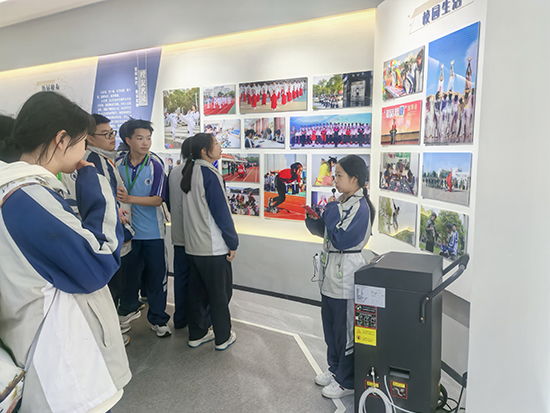 此次活動采取分批參觀形式進行,每周組織一個學部的學生參觀。校史館內(nèi),一張張珍貴的照片成為歷史的見證。由24級導游班7名學生和23市政班1名學生共同組成的講解團,輪流上陣,他們用生動語言將學生的發(fā)展歷程娓娓道來,從建校初心到辦學成果,從專業(yè)發(fā)展到杰出校友事跡,無一不涵蓋其中。高一學生們在照片前久久駐足,從黑白影像中深切感受往昔歲月的痕跡,從電子相冊的光影流轉(zhuǎn)里領略學校日新月異的變遷。這一刻,他們仿佛與先輩們進行了一場跨越時空的對話,心中充滿了對學校歷史的敬畏與對未來的憧憬。