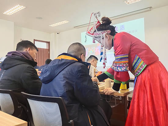 據悉,該系列培訓每周安排兩次課程,吸引了近三十位不同殘疾類別的學生參與其中。而此次培訓的授課教師涂國佳更是湖州市非物質文化遺產代表性傳承人。在11月28日下午,涂老師再次來到育星培智學校授課,并且還帶來兩位工作室成員協助教學,為此次培訓增添了強大的師資力量。