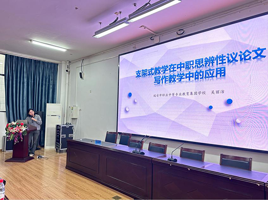 瑞安市職業中等專業教育集團學校的吳麗潔老師,也為大家帶來了一場題為《基于語文核心素養的高職考作文教學策略探究》的專題講座。吳老師以“支架”理論為引領,深入剖析了高職考作文審題立意的關鍵所在——準確把握材料中的核心概念與外延,并在此基礎上進行謀篇布局。她從分論點的擬寫與結構到議論段闡釋句與材料句的寫作方法,層層遞進、深入淺出。吳老師的講解風趣幽默、引人入勝,她強調了素材積累與運用的重要性,并鼓勵教師們從高一開始帶領學生打牢基礎,為未來的高職考作文備考奠定堅實的基礎。