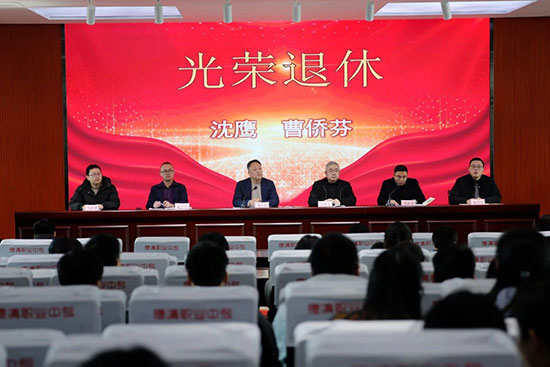 1月20日,德清職業(yè)中專為沈鷹和曹僑芬兩位教職工舉辦了隆重的榮休儀式,全體教職工共同見證了兩位為學校默默奉獻多年老同事的光榮退休。儀式由縣職業(yè)教育黨委委員、德清縣職業(yè)中專副校長高陽會主持。
