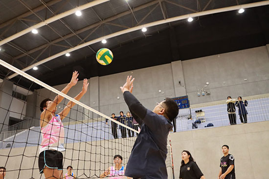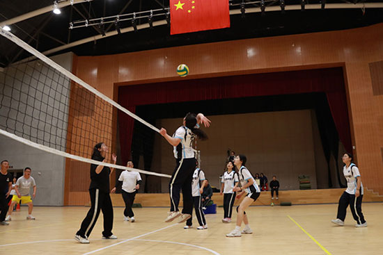比賽過程中,現(xiàn)場氣氛時而緊張,時而熱烈。教師們之間的對決十分精彩,他們展現(xiàn)了良好的競技狀態(tài),動作規(guī)范、彈跳輕盈、扣殺有力、攔網(wǎng)默契,贏得了觀眾的陣陣掌聲。