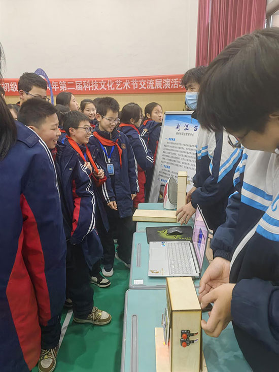 團隊成員們?yōu)槌跫壷袑W(xué)的學(xué)生和老師們展示了自己研發(fā)的智能項目,引來了現(xiàn)場的熱烈反響和濃厚興趣。這些項目均融合了人工智能技術(shù),在展示過程中,團隊成員詳細(xì)介紹了智能項目的功能和應(yīng)用場景。該項目包括智慧農(nóng)場甲烷合理應(yīng)用、廚房寶寶——智能煤氣報警裝置等等。學(xué)生們紛紛圍攏過來,好奇地觀看著演示,不時發(fā)出驚嘆聲。