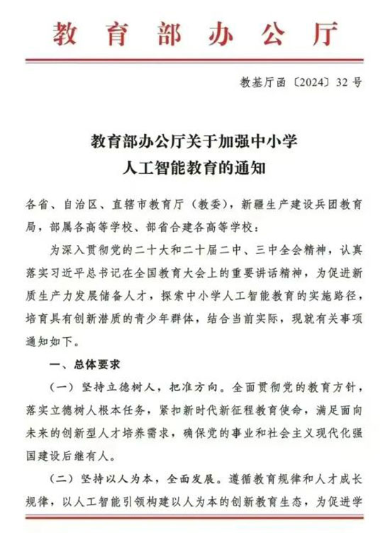 教育部近日印發(fā)了關(guān)于加強中小學(xué)人工智能教育的通知,旨在推動人工智能教育在中小學(xué)階段的普及和發(fā)展。
