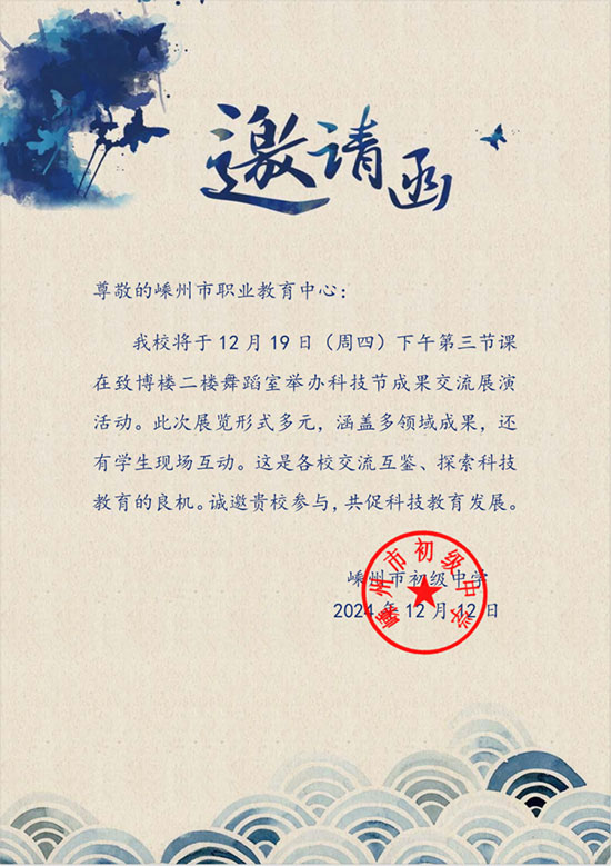 12月19日,應(yīng)嵊州市初級中學(xué)邀約,學(xué)校科創(chuàng)團隊進初級中學(xué)進行展示交流活動。