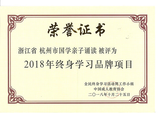 項目啟動以來,每周日晚上堅持開課,至今已開設兩百多次課程,惠及八千余人。在每年的項目滿意度調查中,各家庭對“誦古韻今 共學經典”項目的滿意率均達到100%。該項目先后斬獲區、市、省級的“終身學習品牌”稱號,并被推薦參與全國評比,榮獲全國“終身學習品牌”稱號。