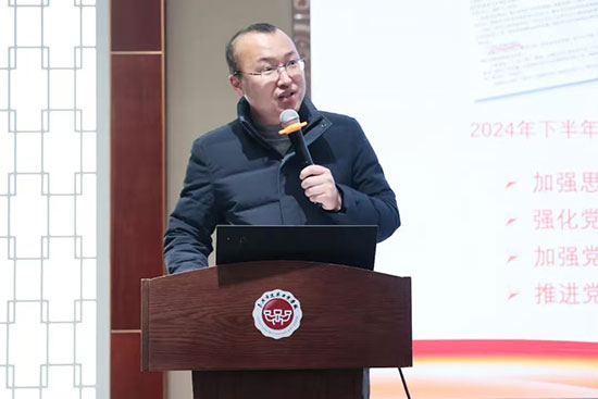學校黨委書記范曉春作2024年度黨建工作總結。從深化“四足立鼎”黨建主品牌、強化“三學三思”學習輔品牌和打造“四色四清”清廉輔品牌三個方面,匯報了學校黨委通過積極塑造兼具職教特色、專業亮點及文化底蘊的黨建品牌體系,扎實推進黨組織領導的校長負責制,黨建引領推進校園文化建設、人才培育、師資發展、產教融合等各方面的工作情況。她結合學校新一年重點工作規劃,對各支部2025年的工作提出了三點要求:一是“榫卯筑頂”,完善頂層設計,優化支部管理黨員形式,提升支部治理質效;二是“術業砼柱”,創新合作交流,拓展支部互助共建渠道,凝聚黨建發展合力;三是“畫棟雕梁”,增加考評體系,激勵全體黨員擔當作為,彰顯多元內涵素養。