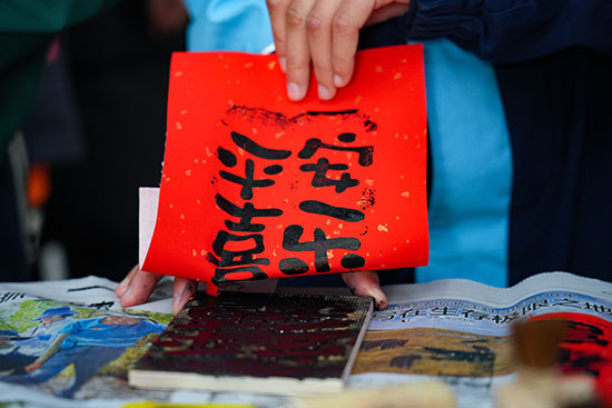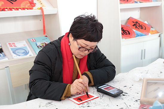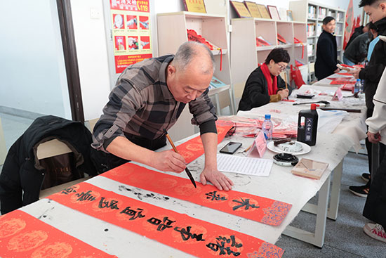 活動現場書香四溢,“年味”十足,一條條長隊有序排開。送“福”字的書法大家以及書法社團老師們以墨筆作媒,以墨字傳情,提筆凝神,在紅紙上揮斥方遒,筆走龍蛇,一橫一豎、一撇一捺,從傳統的楷書到飄逸的行書,一句句工整的妙聯、一個個飽含祝福的“福”字,不僅展現了書法藝術的魅力,更寄托著大家對新的一年幸福生活的殷切期盼。
