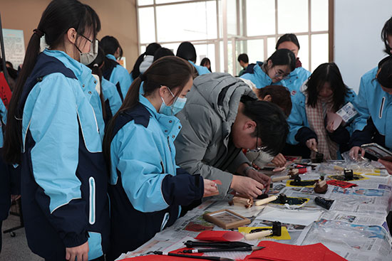 在現場工作人員的指導下,師生們還親身體驗了拓印技藝,感受非遺傳統文化的魅力。新年拓福,以拓為靈,大家選擇自己喜歡的模具,輕輕按壓,墨色緩緩滲透紙張,一筆一畫都承載著對未來的美好憧憬。