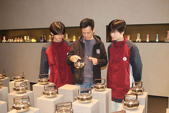 步入“見(jiàn)心”永康東方美學(xué)空間的產(chǎn)品展廳,學(xué)生們被一件件設(shè)計(jì)獨(dú)特、工藝精湛的杯壺所吸引,它們不僅是日常用品,更是匠心與藝術(shù)的結(jié)晶。在講解員的指引下,學(xué)生們細(xì)細(xì)品味每一件作品,從中感受到了設(shè)計(jì)師與工匠們的創(chuàng)意靈感與精湛技藝,進(jìn)一步加深了對(duì)“匠心精神”的理解與認(rèn)同。