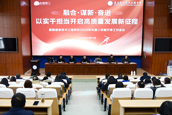 徐晉謙作題為《融合·謀新·奮進——以實干擔當開啟高質量發展新征程》的開學工作報告。他從黨建引領推進清廉學校建設、數字賦能提升學校治理水平、質量監控提升教育教學質量、立德樹人提升育人實效、師資建設提升科研成果轉化、產教融合提升社會服務水平、校園文化豐富精神內涵等方面布置了工作重點。他鼓勵全體教師迅速調整狀態,以最好的精神面貌投入新學期工作,共同為學校的發展貢獻力量。