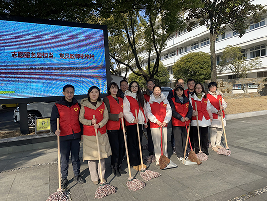 為進一步發揮黨員先鋒模范作用,營造干凈整潔的校園環境,以實際行動迎接新學期的到來,長興開大教師進修學院黨支部于2月19日組織開展了“黨員先行,凈美校園”黨員教師志愿活動。