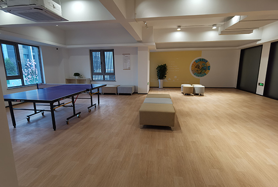 在二樓的體育鍛煉空間,設施按照居民點單率落地。乒乓球和舞蹈深受居民喜愛,光匯港城小區(qū)乒乓球興趣小組就有90多名組員。舞蹈室雖容納20人以內(nèi),但通過錯時和引流,合理分配不同舞種教學班時間,滿足了居民需求。
