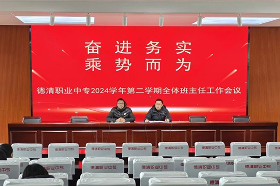 新春伊始,萬象更新。2月19日下午,德清職業(yè)中專召開全體班主任工作會議,部署新學(xué)期德育工作重點,明確班主任工作方向。德清縣職業(yè)教育黨委委員馬紀孝出席會議,會議由學(xué)校政教處處長鄧志民主持。