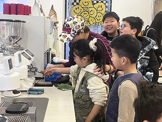 隨后,在咖啡師的指導(dǎo)下孩子們戴上小小的圍裙即將體驗(yàn)親手做咖啡的樂趣。他們首先學(xué)習(xí)了如何挑選優(yōu)質(zhì)的咖啡豆,接著孩子們動(dòng)手制作咖啡,從磨豆到?jīng)_泡,每一個(gè)步驟都小心翼翼。大家互相協(xié)助,交流著自己的體會和技巧。在制作咖啡的過程中,家長們也熱情參與,鼓勵(lì)孩子們勇敢嘗試。當(dāng)一杯杯香濃的咖啡飲品制作完成時(shí),小朋友們臉上洋溢著滿足和自豪的笑容。
