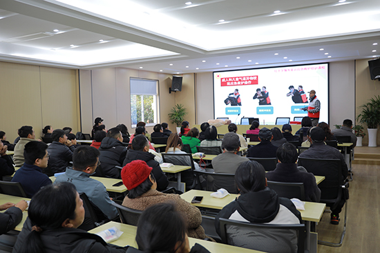 本次救護(hù)員培訓(xùn)采用線上與線下相結(jié)合的方式進(jìn)行。在此之前,村民們已在家中通過線上視頻完成了初步學(xué)習(xí)。線下培訓(xùn)當(dāng)天,昌碩分院特聘教師丁柏偉首先為村民們進(jìn)行了集中理論課教學(xué)。丁老師詳細(xì)講解了氣道異物梗阻和心肺復(fù)蘇兩大急救知識,為村民們打下堅(jiān)實(shí)的理論基礎(chǔ)。