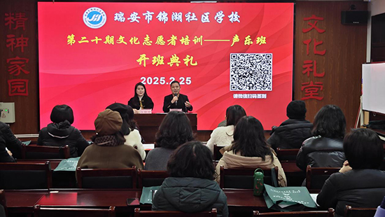 2月25日晚,瑞安市錦湖社區學校的文化禮堂燈火通明,迎來了第二十期文化志愿者聲樂班培訓的開班典禮。此次活動吸引了40多位熱心文化事業的學員參與,旨在通過聲樂培訓助力鄉村文化振興。
