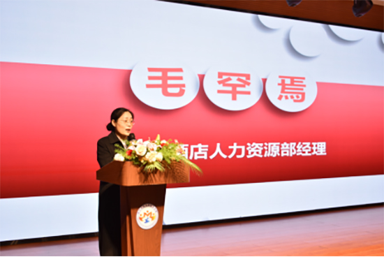 臨平大酒店經(jīng)理毛罕焉作為企業(yè)代表上臺發(fā)言,她詳細(xì)介紹了酒店的企業(yè)文化、發(fā)展歷程以及對人才培養(yǎng)的重視,并對即將進入崗位實踐的學(xué)生們提出了殷切期望。毛經(jīng)理表示,企業(yè)將為學(xué)生們提供優(yōu)質(zhì)的實踐平臺,幫助他們將理論知識與實際操作相結(jié)合,助力他們成長為行業(yè)中的優(yōu)秀人才。