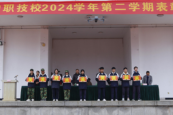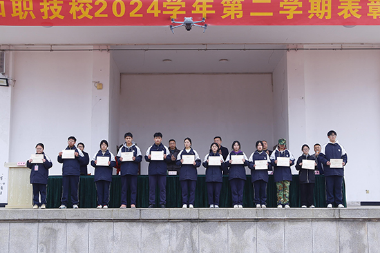 楊偉華發表致辭。他回顧了學校過去一年的輝煌成就,表揚了在技能統測、學科競賽中取得優異成績的學生和班級。同時,他勉勵大家,要相信職業教育魅力無限,要相信自己潛能無限,要相信未來機會無限,用堅定的信念和卓絕的努力,發揮職業教育的優勢,成就更美好的人生。