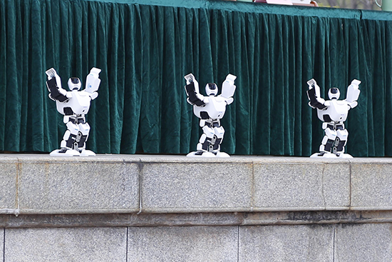 大會在令人矚目的機器人與機器狗的精彩表演中拉開序幕。據悉,為了籌備學生機器人技能競賽,學校特地引進了先進的人工智能設備,助力學生獲得佳績。這些機器人與機器狗活靈活現、憨態可掬,博得了在場師生的熱烈掌聲與連連贊嘆。