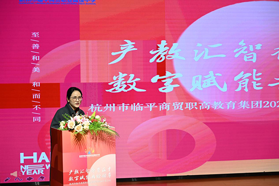 1月10日,杭州市臨平商貿職業高級中學召開2024年杭州市臨平商貿職業高級中學教育集團年度會議。浙江省教育科學研究院職業與成人教育研究所所長崔陵,浙江農業商貿職業技術學院黨委委員、創意設計學院院長呂玉龍,杭州科技職業技術學院旅游學院副書記劉昀,臨平區教育局黨委委員張禹,臨平區供銷社(集團)副主任、一級調研員金云平,臨平區南苑街道黨工委委員王亞瓊,臨平區農業局科技教育科科長蔣鳳至,臨平第一幼兒園園長章敏,臨平南禾幼兒園園長葉萍,臨平區教育局基礎教育科職高負責人沈美華等人與會。浙江省財經商貿行業指導委員會、浙江郵電職業技術學院經濟管理學院、杭州科技職業技術學院商務管理學院、杭州市教育科學研究院職教研究室各位專家,臨平區電商行業協會、旅游行業協會、家紡行業協會、文化創意產業協會,杭州老板電器股份有限公司、浙江省家紡產業創新服務綜合體等集團成員單位盡數出席。學校班子成員、相關中層干部及各專業組負責人參加會議。
