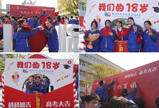 穿過“成長門”后,學生們來到高考助力區,領取了清涼飲品,并在心愿墻上寫下自己的夢想與目標。大家紛紛打卡留念,記錄下這一充滿意義的時刻。(杭州市臨平職業高級中學)