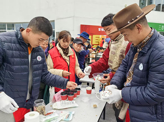 放眼望去,活動現場的健康問診、汽車美容、手機貼膜、藏族酥油茶,糌粑、配鑰匙、理發、金銀彩繡等服務點都排起了長龍,百姓們臉上淌著笑,對服務項目豎起了大拇指。