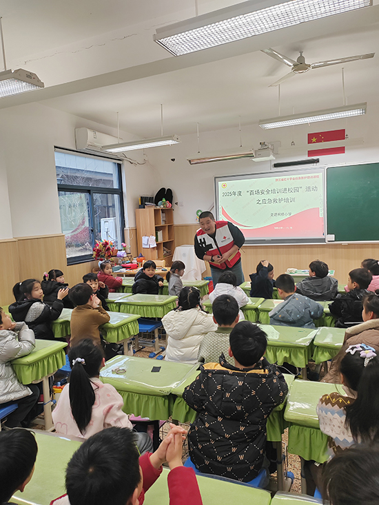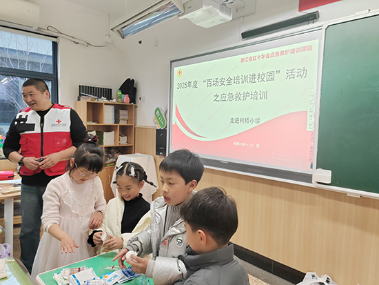 近日,柯橋區(qū)柯橋成人文化技術(shù)學(xué)校邀請到了柯橋區(qū)紅十字會的省一級救護師莫偉風(fēng)老師,給柯橋小學(xué)一(1)班的全體小朋友上了一堂非常有意義的應(yīng)急救護普及培訓(xùn)課。