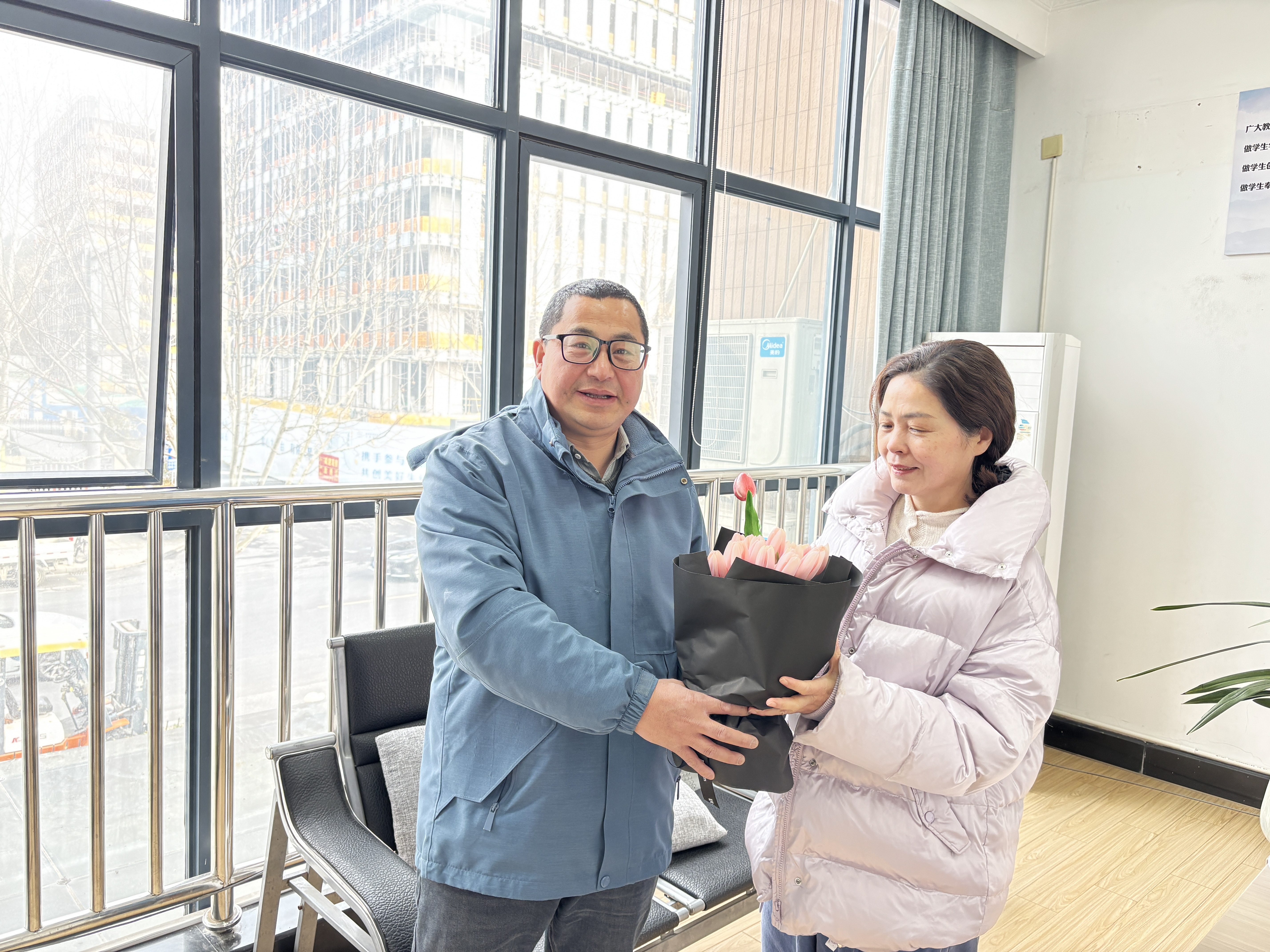 隨后,學校行政開展“實干爭先 鮮花送暖”慰問女教職工活動。副校長張虎代表全體男教師向女教師致以節日的祝福,感謝女教師長期以來為學校所做的貢獻,并送上鮮花和慰問品,鼓勵大家不負韶華、砥礪前行,繼續發揚巾幗不讓須眉的精神。