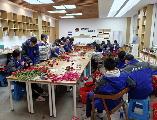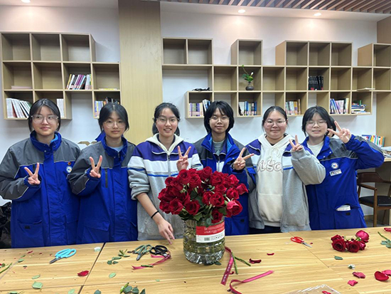 在臨平職高校園,全體女老師溫暖如春日的陽光,是她們的溫柔明媚驅(qū)散了學生心頭的陰霾,是她們的智慧堅強鼓勵著學生勇敢追尋屬于自己的光。校園處處充滿了愛與關懷,這份沉甸甸、無私奉獻的愛,深深打動著每一位臨職學子的心。來自計算機部數(shù)媒專業(yè)2419班的同學們,在趙櫻俊老師的帶領下,利用課余時間為老師們包裝玫瑰花等禮物,他們用行動詮釋對老師的熱愛與感恩,也是2419班送給全體臨職女教師的特殊禮物。