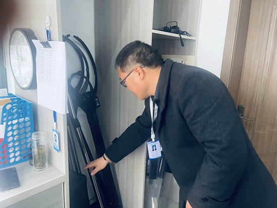 走進警務(wù)室,按“專職保安”“技防設(shè)施”“安保器械”“門衛(wèi)管理”四塊內(nèi)容開展檢查,著重是安保器械設(shè)備使用操作、記錄本的記錄情況。現(xiàn)場問詢了在崗的三位保安,都能比較熟練操作一鍵式報警設(shè)施和查找監(jiān)控回訪記錄,能使用鋼叉、盾牌、警棍、催淚器等安保器械。各類設(shè)備專柜保管,擺放有序,數(shù)量符合要求,都在有效期內(nèi)。查閱《外來人員來訪登記簿》《校園周邊安全隱患排查、整改登記簿》《警務(wù)室值班巡查登記簿》《外來車輛進出校門登記簿》等臺賬的記載情況,記錄完整齊全。校門關(guān)閉,拒馬擺放,升降柱升起,人員車輛出入都按要求檢查登記。來到校長室,與校長趙娜對“新時代‘楓橋經(jīng)驗’教育督導(dǎo)及數(shù)字化轉(zhuǎn)型工作”作了溝通,探討了“校園安全管理”“糾紛化解(信訪化解)”“輿情防控”三塊內(nèi)容,重點是方案如何具體落實。