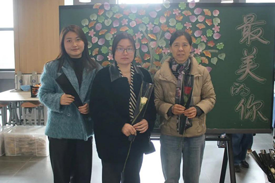 本次活動最最引人注目的是食堂三樓活動區那棵“祝福樹”,五彩繽紛的留言條,仿佛一朵朵盛開的花朵,訴說著學生對他們心中最美女老師最真摯的愛與祝福。“to盧佳老師,雨露不曾偏私,草木記得恩誼。”“夏麗娜老師,遇到事情勇敢上,不畏縮,在此祝福她天天開心,身體健康!”“雷娜老師,我們愛你”“to夏雨欣老師,我們為你打call,你最漂亮,你最美麗”“阿琿老師,您在班里辛勤付出,我們都記在心里,感謝您為模具231班付出的心血,辛苦了!”“祝朱小蘇老師身體健康、心想事成!”“祝我們可愛的林欣欣,身體健康、萬事順心,早日康復,天天開心一百分!”