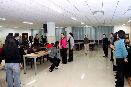 培訓活動邀請了柯橋區(qū)職業(yè)教育中心資深形象管理師蔣米娜前來授課,內(nèi)容包括職業(yè)形象、禮儀規(guī)范、溝通技巧等。蔣老師以身示范,并逐個動作指導糾正,整個培訓過程生動有趣,學員參與度高,互動頻繁,氛圍熱烈。
