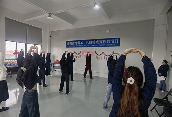 在三八國際婦女節來臨之際,新碶成校聯合大港工業社區,為寧波翌波光電科技有限公司的女職工們帶來了一場別開生面的八段錦培訓活動,以獨特方式關愛女性員工身心健康,豐富其精神文化生活。